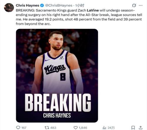 NBA今天全明星周末正式开启,而在第一个项目名人赛开打期间,NBA又曝出一宗明星级选手赛季报销的新闻: