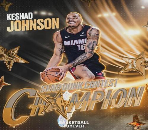 热火小将凯沙德-约翰逊飞跃说唱歌手,手摸后脑勺扣篮,平均分47.4分。最后出场的是湖人中锋海斯,罚球线内一大步扣篮,平均分44.6分四人最低。理查德森和海斯的扣篮一言难尽,没有难度也没有创意,感觉像临时准备的一样。