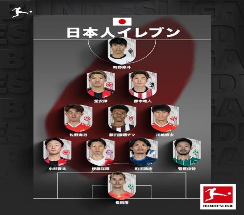 德甲官方日语账号分享了一套日本现役球员德甲阵容。