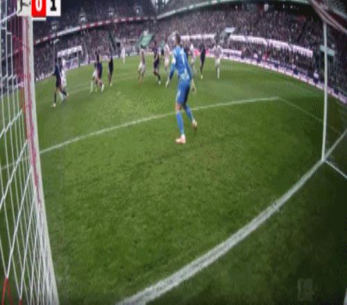第56分钟,技术精湛,鲍姆加特纳停球转身抽射破门一气呵成,莱比锡2-1
