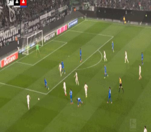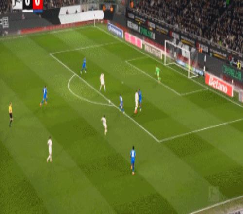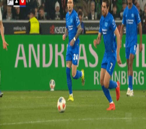 第45分钟,加西亚打门,桑德尔自摆乌龙,门兴1-1药厂