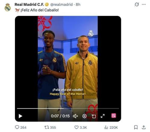 皇马官媒配文表示:马年快乐!