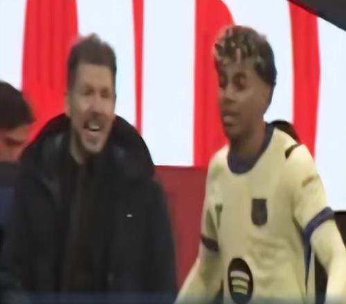 亚马尔从边线处路过,西蒙尼抓住机会,朝着亚马尔打手势——伸出3根手指,冲着亚马尔喊叫。这是西蒙尼的挑衅、羞辱,意思是“我们已经3-0领先”。