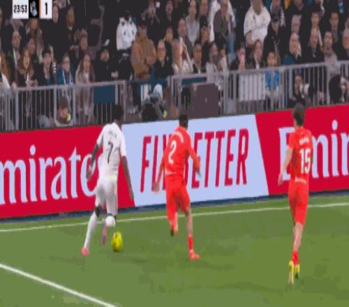 易边再战皇马继续压制皇家社会,开场不到1分钟,维尼修斯又在禁区左路强突阿兰布鲁,阿兰布鲁这次第一下没被急停变向晃到,但是维尼修斯第二次变向穿裆人球分过,阿兰布鲁还是犯错将维尼修斯铲倒,皇马再次获得点球机会。维尼修斯再次亲自操刀主罚命中,维尼修斯梅开二度,皇马4:1继续扩大领先优势。第54分钟,贡萨洛高速插上再次获得半单刀机会,只是他这次停球就莫名其妙的失误了,再次错失良机。比赛尾声阶段,奥斯卡森和维尼修斯都打入一球,但都是越位在先被吹掉。最终皇马主场4:1大胜皇家社会,豪夺西甲8连胜。