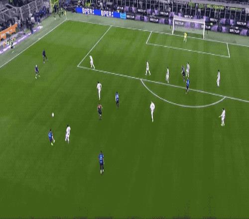30分钟后,国米接连获得机会,劳塔罗错失良机,泽林斯基的射门越过门将,被布雷默门线解围。