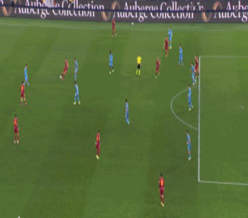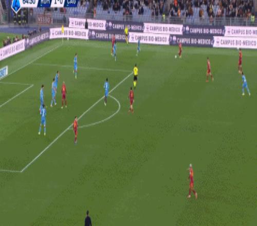 第24分钟,先拔头筹,马伦前插小角度巧射破门,罗马1-0
