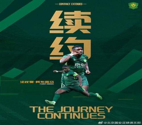 北京国安与法比奥完成续约,合同至2027年底